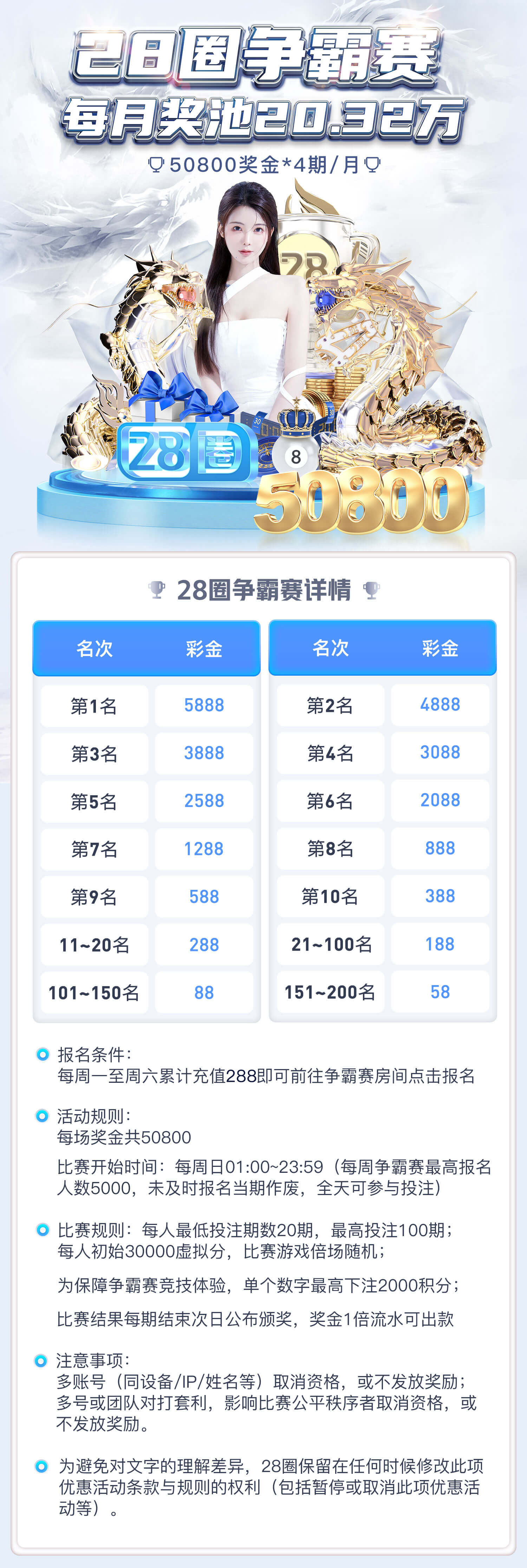 覆盖世界各地大小赛事,提供让球、大小、半全场、波胆、单双、总入球、连串过 关等多元竞猜。平均月10,000多场比赛,28圈不会让您错过任何自己最喜爱的 体育赛事。